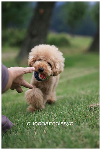 一生懸命 ボールを追いかけ 持って帰ってくる姿が